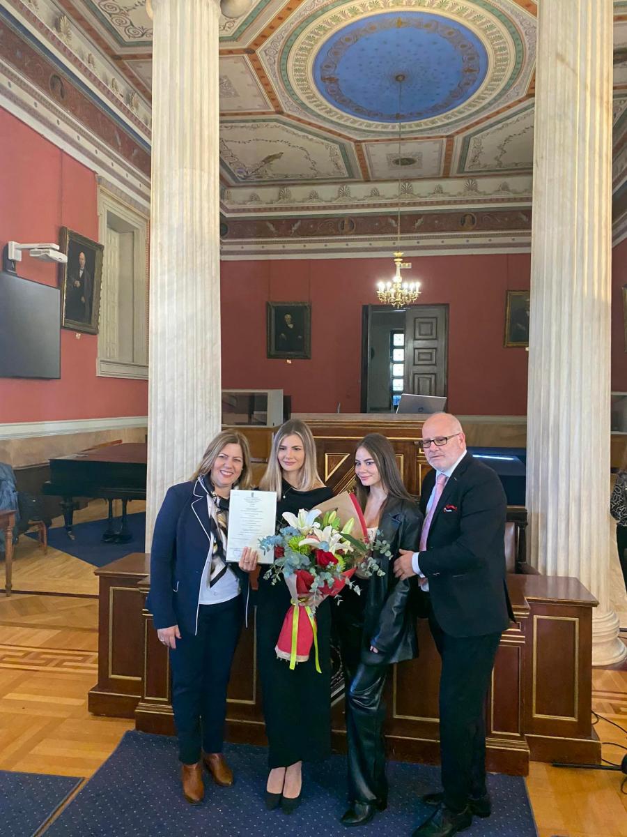 Στιγμές συγκίνησης έζησαν όσοι παραβρέθηκαν σήμερα στη τελετή απονομής πτυχίου, Ιστορίας και Φιλοσοφίας στο ΕΚΠΑ, της πτυχιούχου Ναταλίας Ράπτη. Η νέα επιστήμονας είναι κόρη του Νίκου και της Ειρήνης Ράπτη που πανευτυχείς παρακολούθησαν την κόρη τους να περνά από την φοιτητική ζωή στον επαγγελματικό στίβο! Στην τελετή της ευχήθηκαν καλή σταδιοδρομία η αδερφή της Μαρκέλλα και πολλοί επιστήθιοι φίλοι.